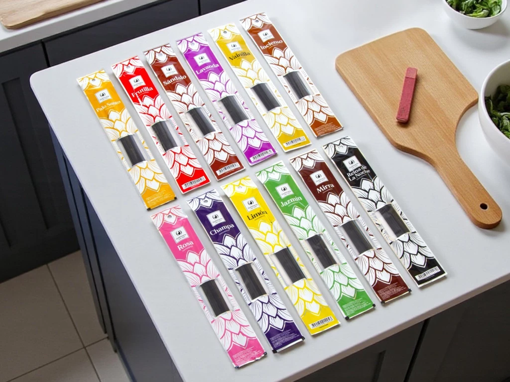| aromas | champa, frutilla, incienso, jazmin, lavanda, limon, mirra, palo santo, reina de la noche, rosa, sándalo, vainilla, surtido |
